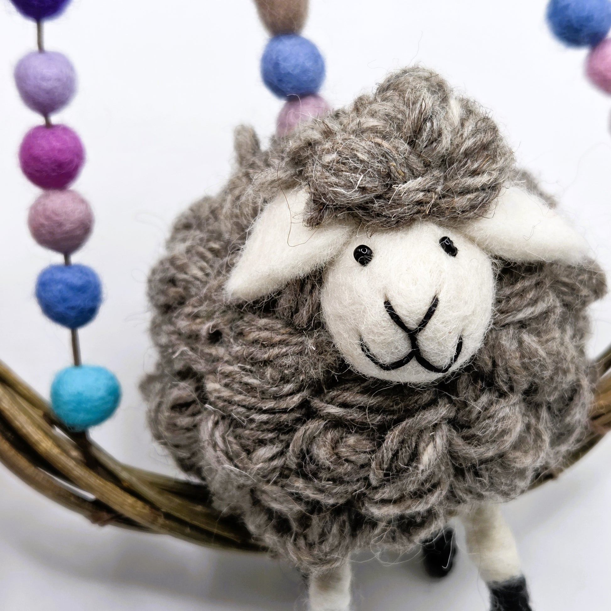 The little sheep is lovingly handcrafted in Nepal, at the heart of this piece and is created through a collaboration between Tamzen Lundy Designs and a community of artisans who use traditional feltmaking skills. Partnering with a fair-trade supplier ensures these makers have secure employment and fair pay within safe working conditions. Wool and felt-making are a heritage craft of Nepal and these skills are deeply rooted in that culture.