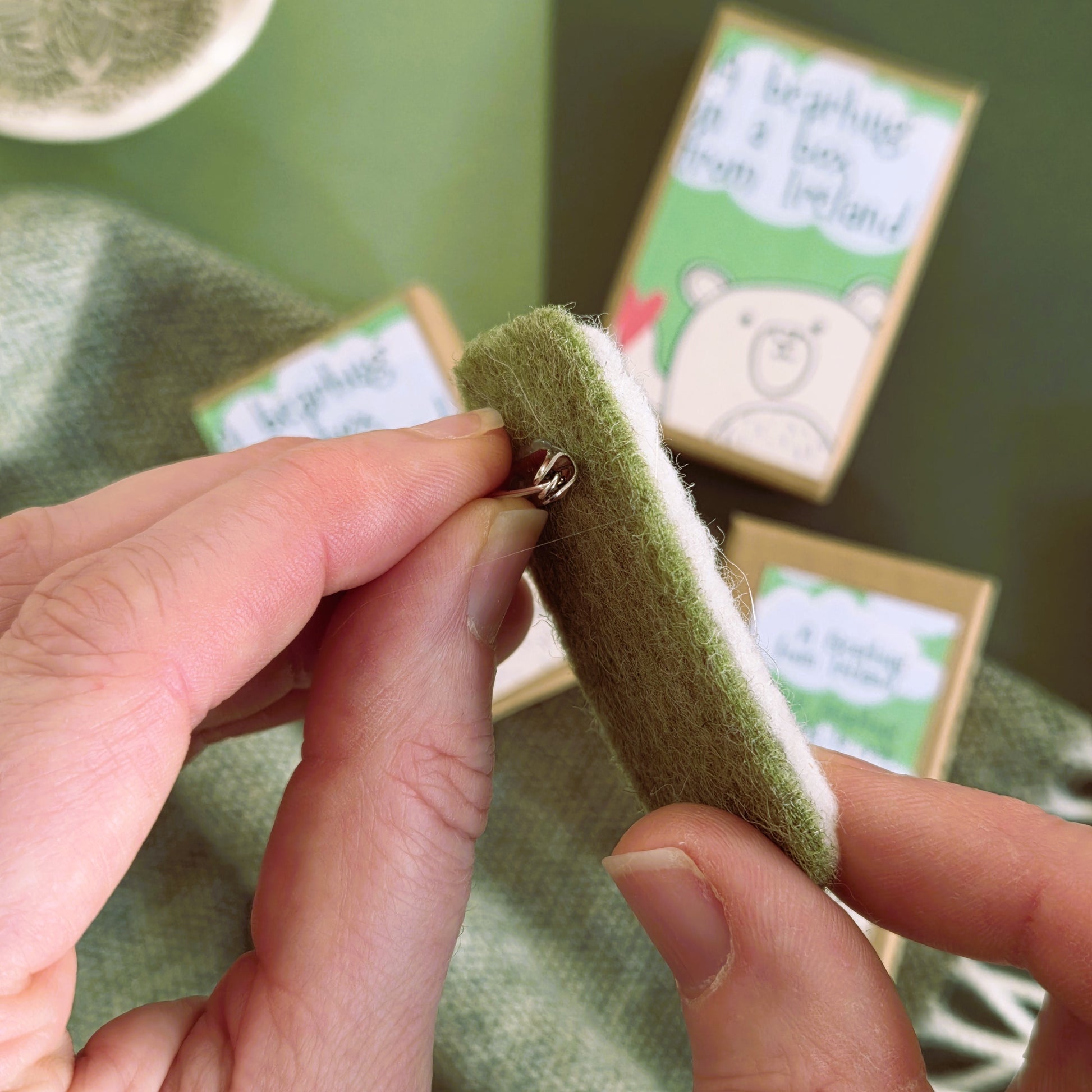 Sometimes the smallest gifts carry the greatest meaning. Bear in a Box is a lovingly hand-embroidered, woollen felted bear- brooch, tucked snugly inside a matchbox-sized gift box (5cm x 7.5cm x 2.5cm).