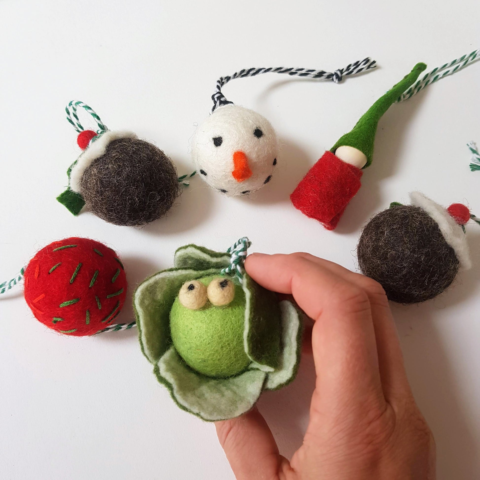 Each ornament is handcrafted with care and whimsy, bringing cozy textures, festive colours, and timeless charm to your holiday decor. Which one is your favourite? Whether it’s a figgy pudding, a little elf, or even a brussel sprout, every piece is unique — made to delight and designed to last for many Christmases to come.