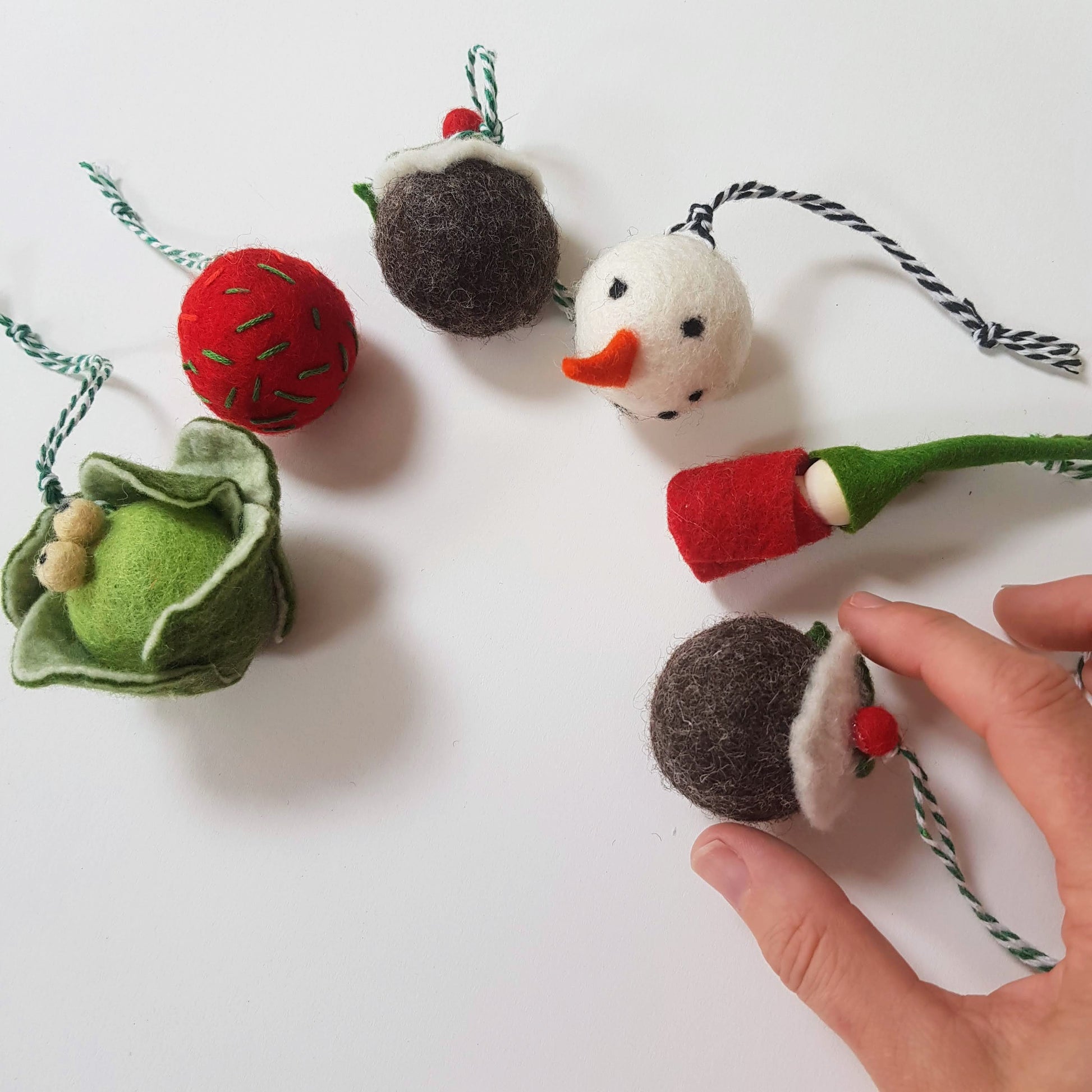 6 handcrafted wool felt ornaments
