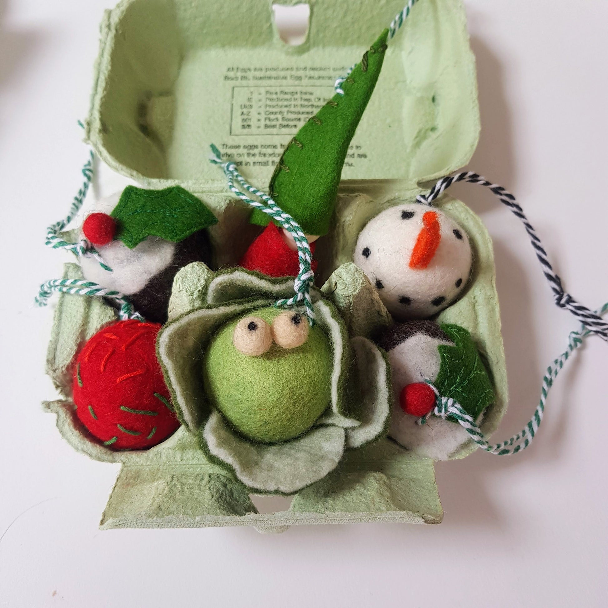 Unwrap the magic of the season with the Little Box of Wonder — a heart warming collection of 6 handmade woollen felted Christmas ornaments, lovingly nestled in a charming eggbox package.