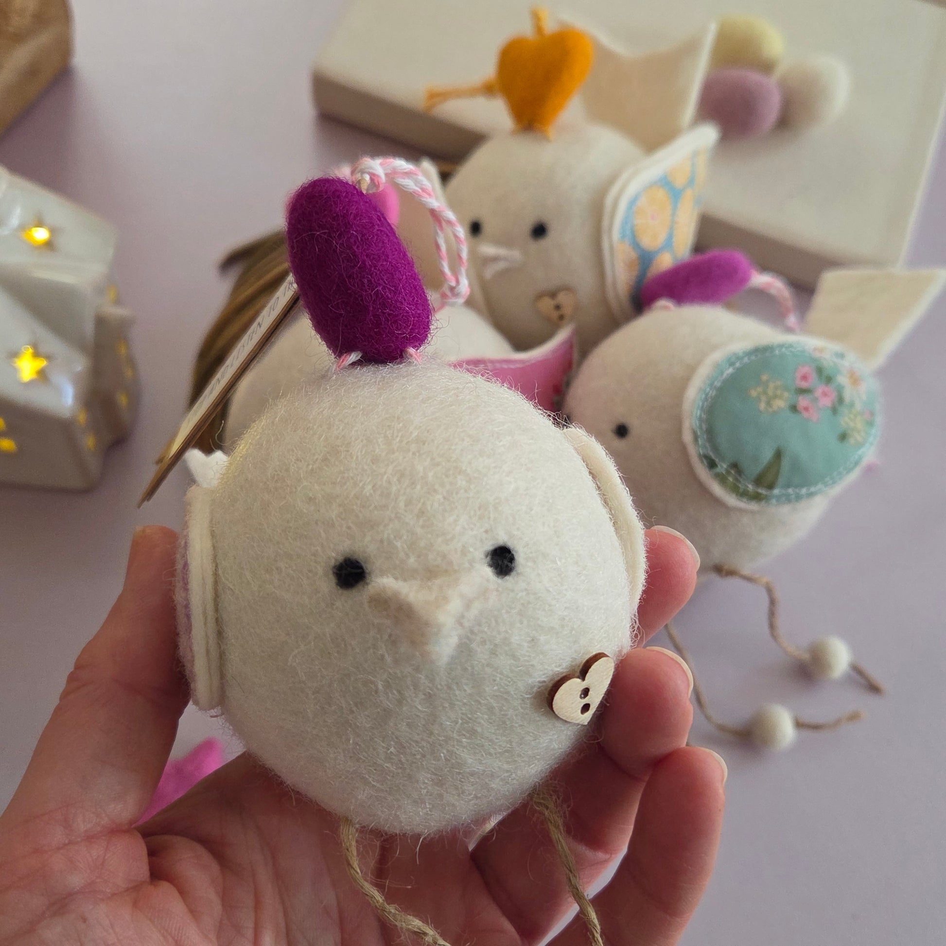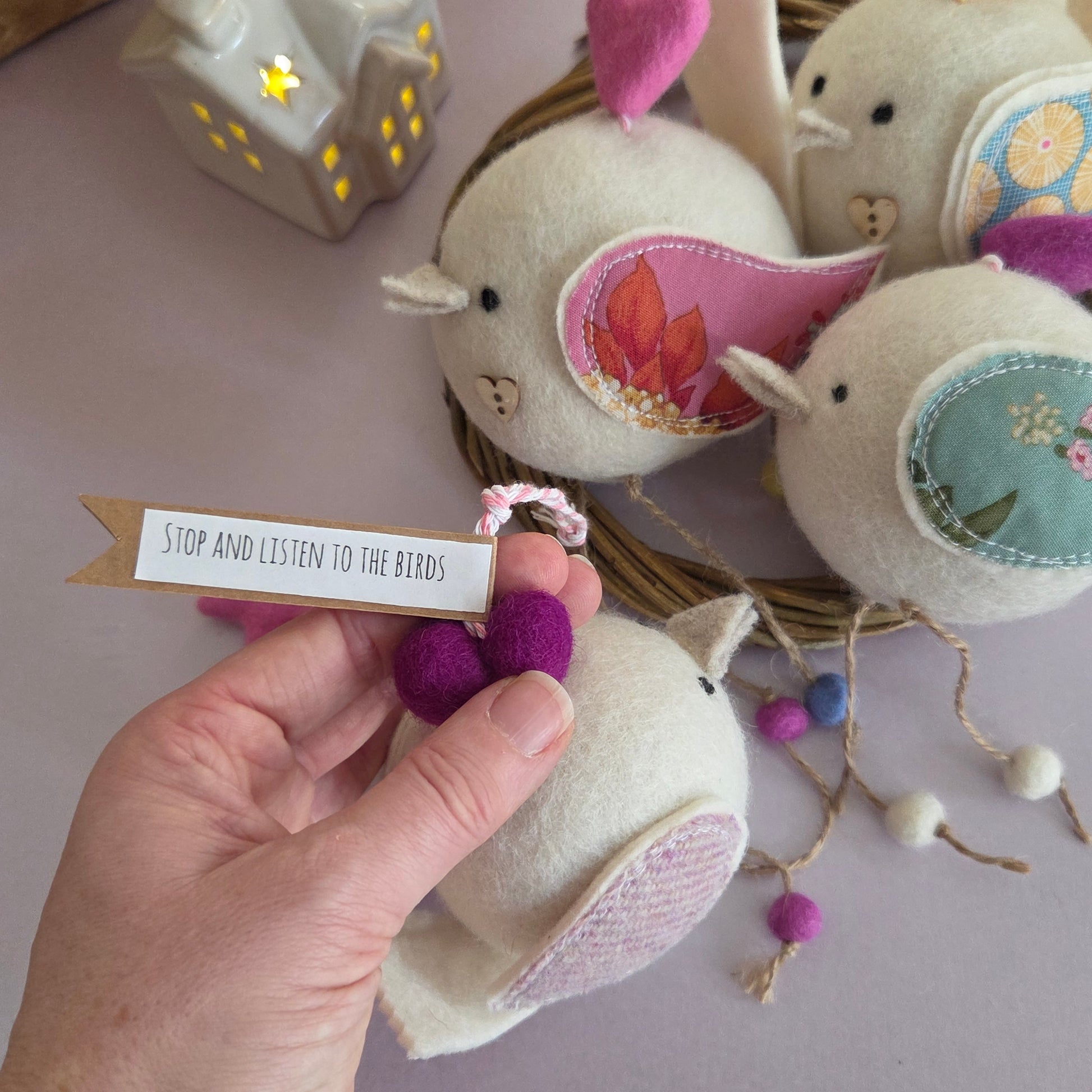 A gentle celebration of springtime, this colourful Spring Bird invites you to pause, listen to the birds, and welcome the season of reawakening. Carefully crafted by hand from 100% wool using traditional wet felting techniques, each bird carries a quiet message of calm, connection, and hope — perfect for Easter and beyond.
