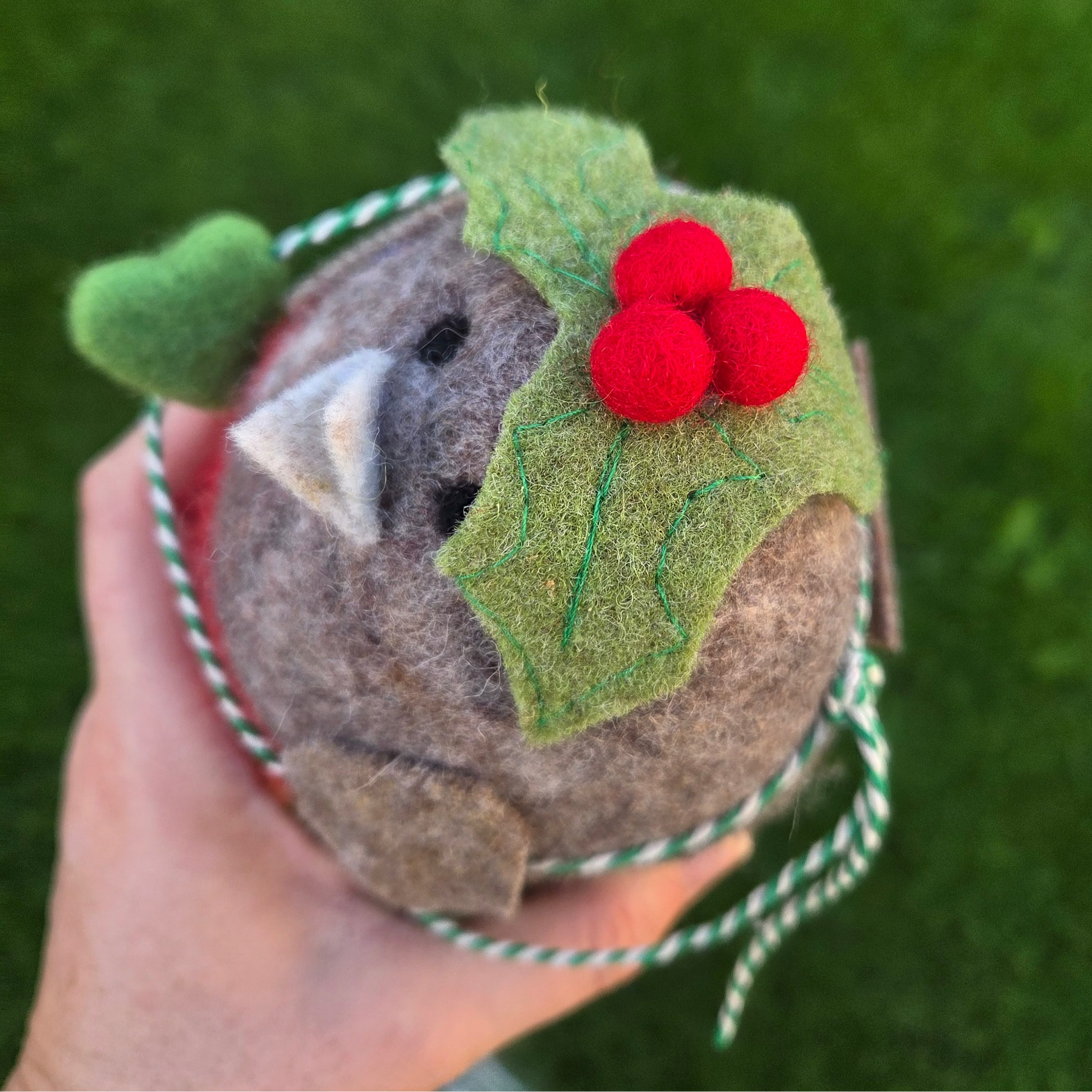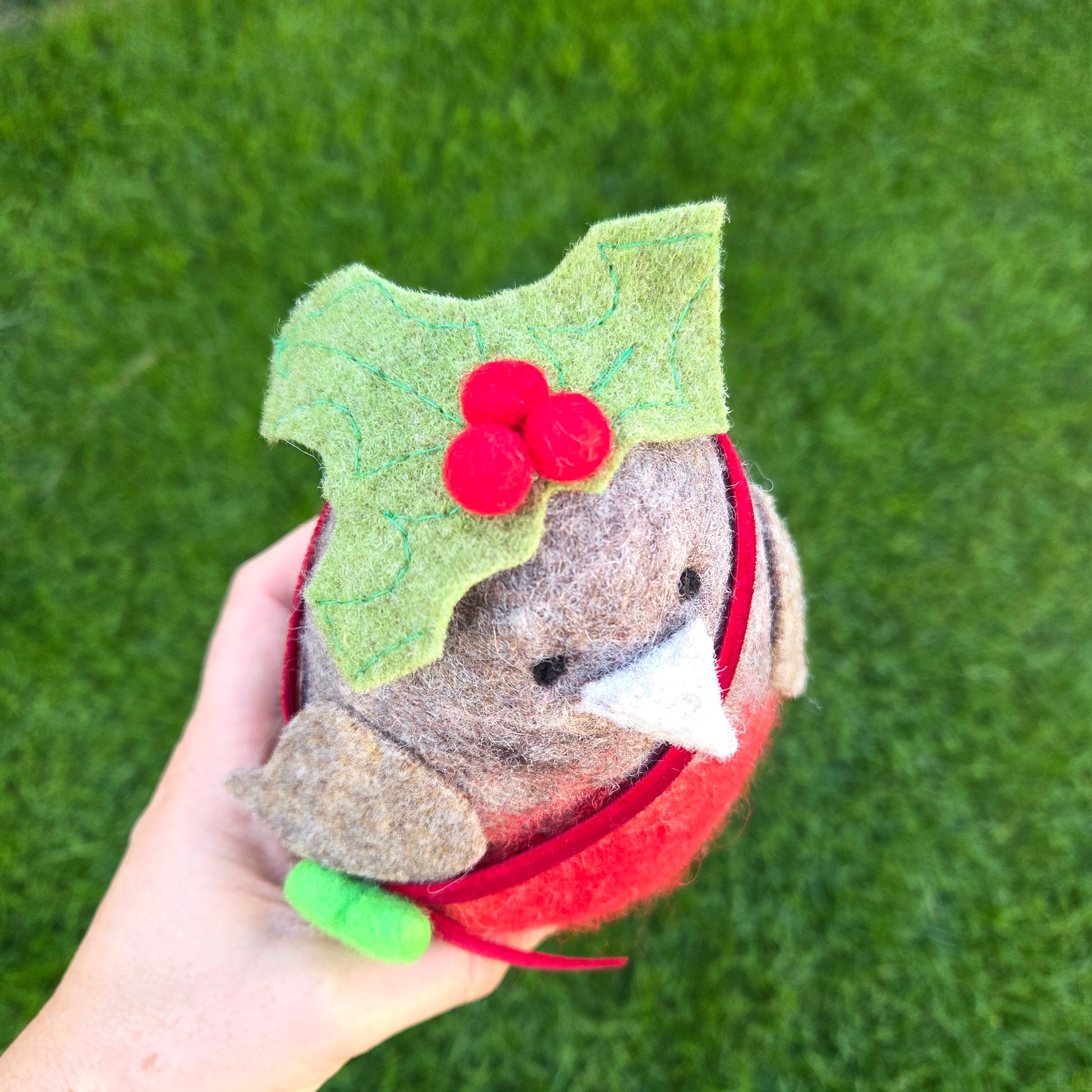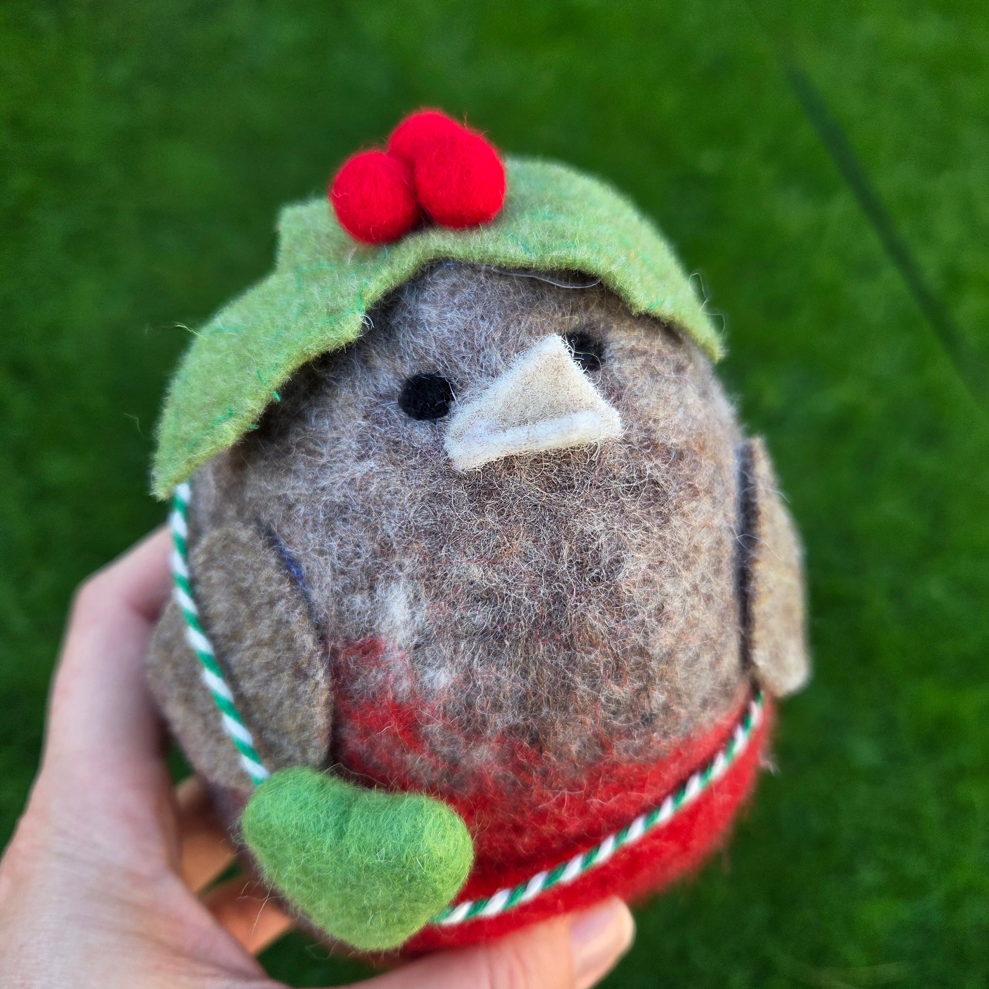 Bring a touch of winter charm to your home with the Standing Robin — a beautifully handcrafted holiday ornament made from 100% wool using traditional wet felting techniques. Standing proudly at approx. 25cm tall on a small wooden plinth, each robin is full of character and festive spirit.